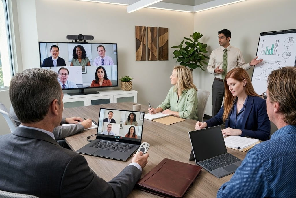 Собрать всех участников на видеоконференцию значительно проще, чем организовать их встречу в одном месте и в одно время. Поэтому процесс обсуждения и принятия решения по насущным проблемам может сократиться от нескольких дней или недель до нескольких часов.